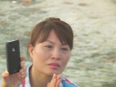 Mình giương máy ảnh, kéo room theo hướng và thấy rõ mồn một chiếc tàu cá dài dài bẩn bẩn rất đặc trưng của Trung Quốc, hùng hục kéo theo sau cả chục chiếc thuyền con, với đám người trần trùng trục, đầu cắt cua trên boong.