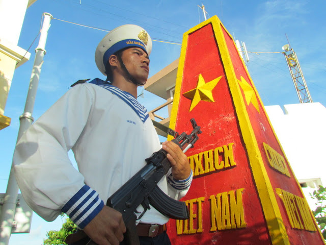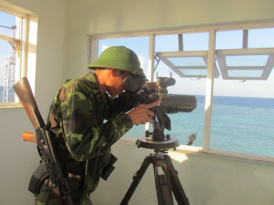 Đứng trên đài quan sát, mình không chỉ nhìn thấy bọn “tàu mẹ, tàu con” tham lam, hiểm độc mà còn thấy cả cái nhà to chình ình của Trung Quốc trên bãi ngầm Huy Gơ mà chúng đã chiếm giữ từ năm 1988.