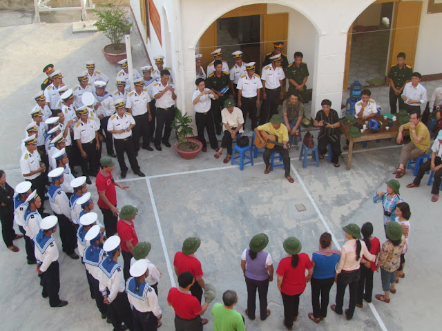 Đám đàn ông con trai cả úy, tá lẫn tướng nhìn cảnh đó cũng hoe mắt, quay ra biển đang mòng mọng hoàng hôn. Ai đó nảy ra sáng kiến: “Cùng hát một bài nhé!”. Thế là cả khách lẫn chủ cùng kề vai, vỗ tay hát: “Vì nhân dân quên mình, vì nhân dân hy sinh, anh em ơi vì nhân dân quên mình!” trong buổi chiều ráng đỏ.