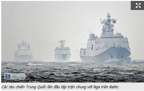 Ngày 21/7 vừa qua, 3 tàu chiến của Trung Quốc lần đầu tiên tham gia tập trận chung với các tàu chiến của Nga tại vùng biển Baltic. Thông qua cuộc tập trận hải quân chung mang tên Hợp tác trên biển, 2 cường quốc này muốn gửi thông điệp tới Mỹ cũng như người dân của mình rằng Nga-Trung đang đoàn kết với nhau để chống lại sự lấn lướt của phương Tây, và rằng Moscow cũng như Bắc Kinh không hề ngần ngại để phô trương sức mạnh tại “sân sau” của NATO.