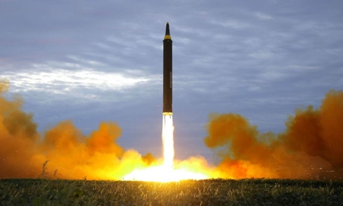 Tên lửa Triều Tiên trong một vụ phóng thử. Ảnh: Reuters/KCNA.