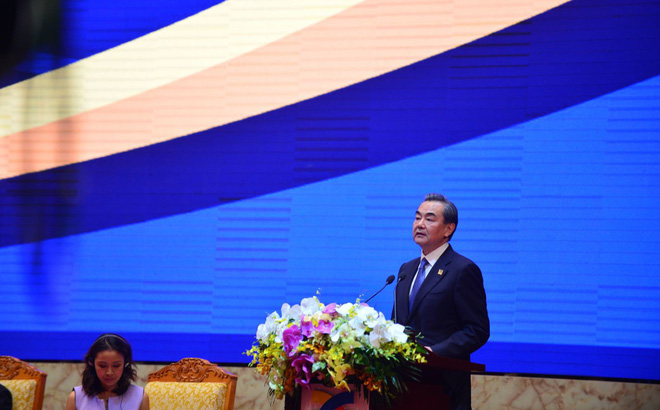 Ông Vương Nghị, Ủy viên Quốc vụ Viện, Ngoại trưởng nước Cộng hòa Nhân dân Trung Hoa phát biểu tại phiên toàn thể Hội nghị Thượng đỉnh Kinh doanh GMS 2018. Ảnh: Quốc Tuấn