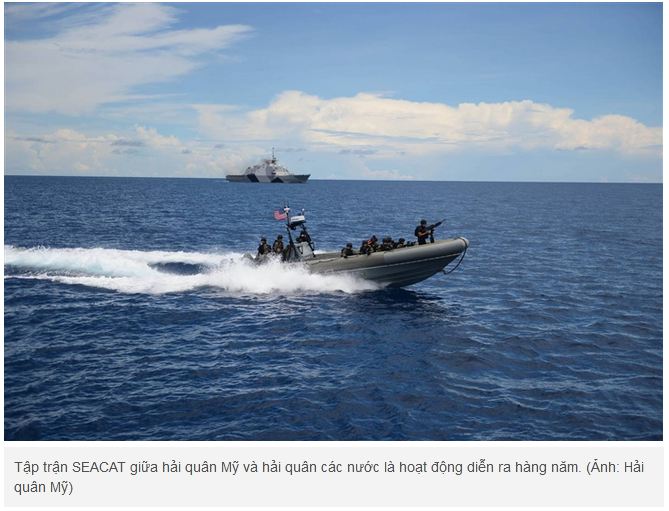 Hôm 10/8, cuộc tập trận thường niên, mang tên Hợp tác và Huấn luyện Đông Nam Á (SEACAT), giữa hải quân Mỹ và hải quân các nước trong khu vực đã diễn ra tại Singapore. Đây là năm thứ 20 diễn ra tập trận SEACAT.