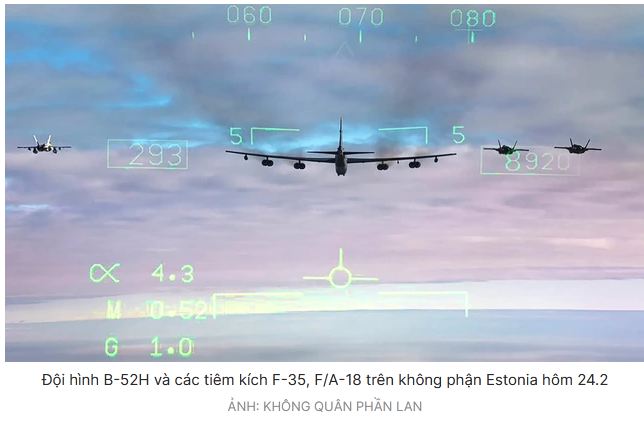 Xem pháo đài bay B-52H cùng chiến đấu cơ tàng hình F-35 bay qua, cách Nga và Belarus chỉ vài chục km