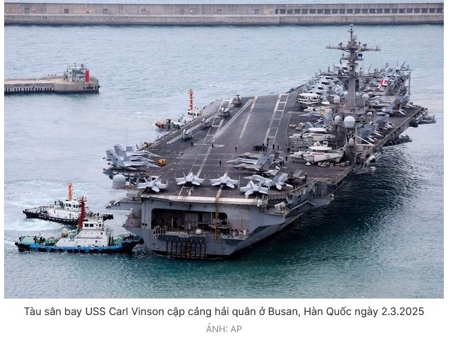 Theo Yonhap hôm nay dẫn thông báo từ Hải quân Hàn Quốc, sự xuất hiện của tàu sân bay USS Carl Vinson và nhóm tác chiến của Mỹ tại cảng Busan (Hàn Quốc) nhằm tăng cường khả năng tương tác và tổ chức các hoạt động hữu nghị giữa lực lượng hải quân 2 bên. Đây là tàu sân bay đầu tiên của Mỹ tới Hàn Quốc kể từ tháng 6.2024.