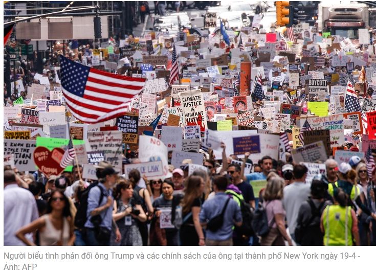 Theo Đài Fox News, các cuộc tuần hành và biểu tình phản đối ông Trump diễn ra trên khắp nước Mỹ, từ bờ Tây sang bờ Đông nước này, ở mọi tiểu bang và vùng lãnh thổ của xứ cờ hoa ngày 19-4.