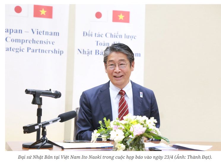 Tại cuộc họp báo vào ngày 23/4, Đại sứ Nhật Bản tại Việt Nam Ito Naoki đã điểm lại những thành tựu quan trọng trong hợp tác song phương, cũng như khẳng định cam kết của Nhật Bản trong việc thúc đẩy quan hệ với Việt Nam trong khuôn khổ Đối tác Chiến lược toàn diện vì hòa bình và thịnh vượng tại châu Á và trên thế giới.