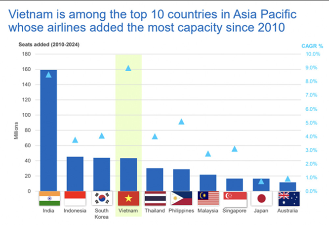 Trong 10 năm tới, lưu lượng hàng không tại Việt Nam được kỳ vọng sẽ tăng gấp đôi, đạt hơn 75 triệu lượt hành khách mỗi năm.