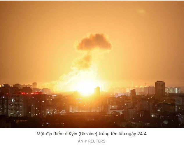 Không quân Ukraine hôm qua 25.4 cáo buộc Nga đã phóng 103 máy bay không người lái (UAV) vào lãnh thổ Ukraine trong đêm 24.4 và rạng sáng 25.4, gây thiệt hại ở các khu vực Kharkiv, Sumy, Cherkasy, Donetsk và Dnipropetrovsk, theo Reuters. Không quân Ukraine tuyên bố đã bắn hạ 41 chiếc UAV trong số đó và 40 chiếc khác bị thiết bị tác chiến điện tử chuyển hướng khỏi mục tiêu.