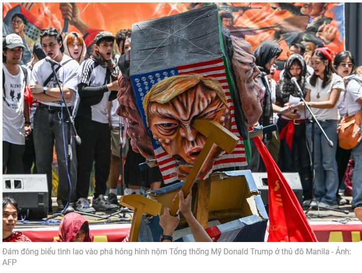Người lao động Philippines cũng lên tiếng phản đối chính sách thuế quan hiện hành của Tổng thống Trump áp lên hàng hóa nhập khẩu. Một số người quá khích lao vào đập phá hình nộm mô phỏng ông Trump ở cuộc tuần hành tại Manila.