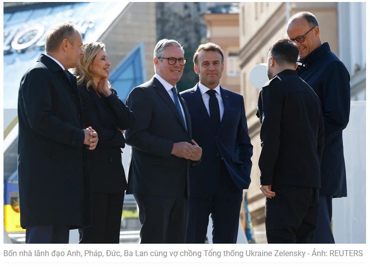 Lần đầu tiên Thủ tướng Anh Keir Starmer, Tổng thống Pháp Emmanuel Macron, Thủ tướng Đức Friedrich Merz và Thủ tướng Ba Lan Donald Tusk đến Ukraine trong một chuyến thăm cấp cao.