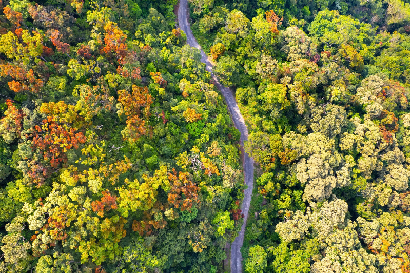 Từng vạt rừng như đang đổi màu giữa không gian tươi xanh. Hoa sim tím, phượng dây đỏ, rừng chò chỉ… rực rỡ với sắc hồng chen lẫn rừng cây thàn mát (sưa trắng) trổ hoa tím ngắt, tạo nên khung cảnh lãng mạn hiếm thấy.