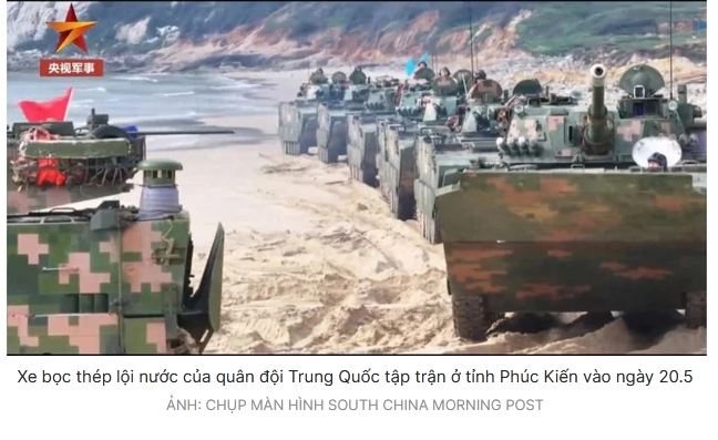 Tờ South China Morning Post hôm nay 21.5 dẫn lại thông tin từ Đài truyền hình trung ương Trung Quốc (CCTV) cho Tập đoàn quân 73 của quân đội Trung Quốc (PLA) đã thực hành các chiến thuật và kỹ năng lái xe gần bờ và các hoạt động đổ bộ bằng xe bọc thép lội nước trên một bãi biển ở bờ biển của tỉnh Phúc Kiến (Trung Quốc).