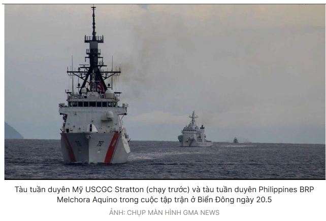 Cuộc tập trận chung nói trên được tổ chức tại vùng biển ngoài khơi hai tỉnh Palawan và Occidental Mindoro của Philippines hôm 20.5, với sự tham gia của Hải quân, Không quân và Lực lượng Tuần duyên Philippines, cùng với tàu USCGC Stratton của Lực lượng Tuần duyên Mỹ và một máy bay tuần tra hàng hải P-8A Poseidon của Hải quân Mỹ.