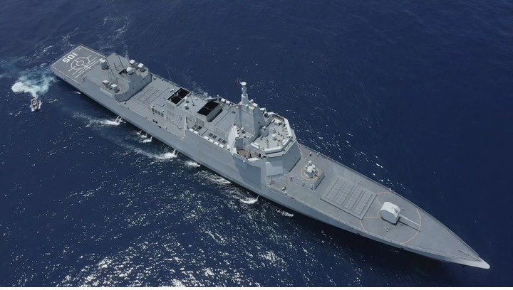 Ảnh chụp từ trên không của tàu khu trục hạm Type 055 Hải quân Trung Quốc. Nước này hiện có lực lượng hải quân lớn nhất thế giới tính theo số lượng tàu.