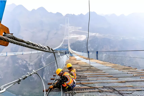 Một cây cầu treo mới tại tỉnh Quý Châu, Trung Quốc được kỳ vọng sẽ trở thành cây cầu cao nhất thế giới khi hoàn thành vào tháng 6/2025.