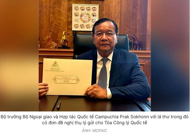 Theo Thủ tướng Hun Manet, một quan chức của Bộ Ngoại giao và Hợp tác Quốc tế Campuchia đã chuyển đơn đến Tòa đại sứ Hoàng gia Campuchia ở Hà Lan thông qua Brussels (Bỉ). Tòa đại sứ cử người nộp đơn lên ICJ ở The Hague hôm nay 16.6.