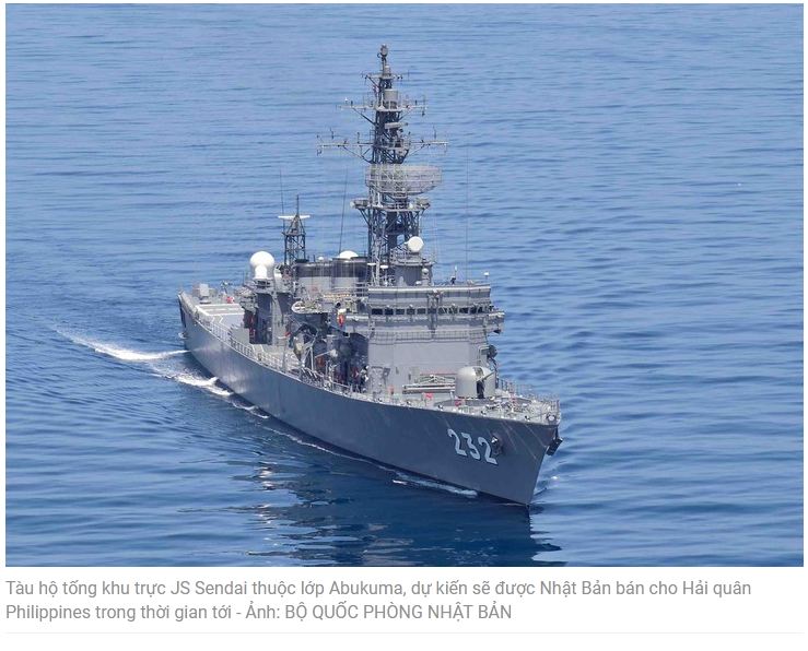Ngày 6-7, Hãng tin Reuters dẫn lời báo Yomiuri (Nhật Bản) khẳng định Tokyo sẽ bán cho Philippines 6 tàu hộ tống khu trục (destroyer escort) đã sử dụng thuộc lớp Abukuma.