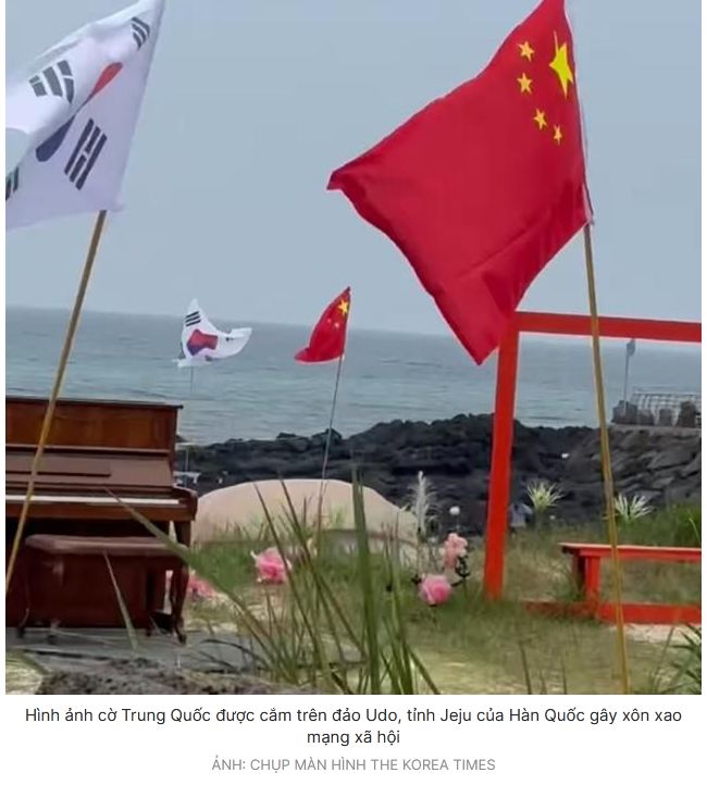 Người dùng mạng xã hội gần đây chia sẻ rộng rãi video của một người dùng Hàn Quốc, nói rằng đang du lịch ở đảo Udo, tỉnh Jeju (Hàn Quốc). Người này phát hiện và quay phim cờ Trung Quốc được cắm sát cờ Hàn Quốc trên đường đến bãi biển Hagosudong, The Korea Times đưa tin hôm 14.7.