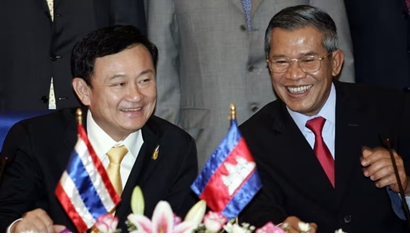 Năm 2009, khi Thaksin đang sống lưu vong, Hun Sen đã bổ nhiệm ông làm cố vấn kinh tế cho chính phủ Campuchia. Quan hệ càng trở nên cá nhân hơn vào năm 2013, khi cháu gái của Thaksin kết hôn với con trai của một trong những trợ lý hàng đầu của Hun Sen. Sau đó, vào năm 2017, khi em gái của Thaksin là Yingluck chạy trốn khỏi Thái Lan ba năm sau khi bị lật đổ trong cuộc đảo chính quân sự năm 2014, đích thân Hun Sen là người đã tìm đường thoát cho bà và giúp bà có được hộ chiếu.