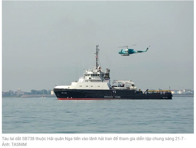 Theo Hãng thông tấn Tasnim, ngày 21-7, tàu lai dắt SB738 của Hải quân Nga đã tiến vào lãnh hải Iran trên Biển Caspi để tham gia cuộc diễn tập cứu hộ và cứu nạn hàng hải chung giữa hai nước.