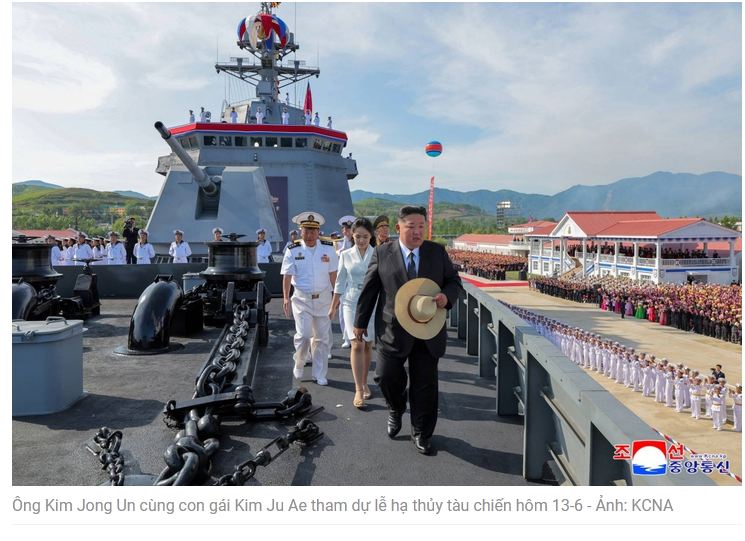 Trước đó KCNA ngày 13-6 đưa tin lãnh đạo Triều Tiên Kim Jong Un cùng con gái Kim Ju Ae – người được xem là người kế nhiệm tiềm năng – đã tham dự lễ hạ thủy tàu chiến sau sự cố vào cuối tháng 5.