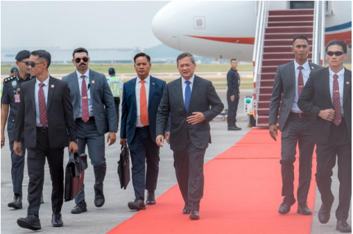 Thủ tướng Campuchia Hun Manet (cà vạt xanh) tới Malaysia hôm 28/7