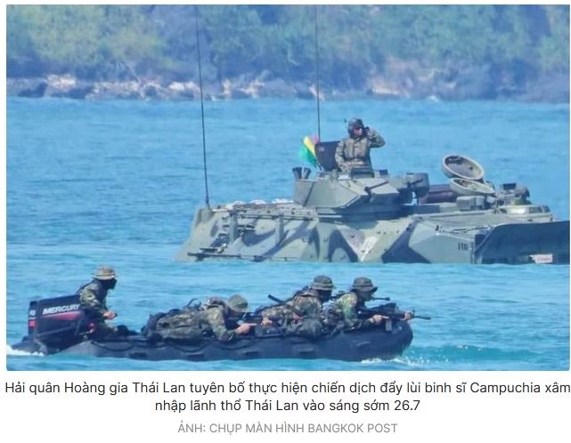 Bangkok Post dẫn tuyên bố từ lực lượng đặc nhiệm thủy quân lục chiến Trat của Thái Lan cáo buộc lực lượng Campuchia đã xâm phạm 3 địa điểm trong lãnh thổ Thái Lan lúc 5 giờ 10 phút ngày 26.7. Hải quân Hoàng gia Thái Lan đã phản ứng nhanh chóng và đẩy lùi các vị trí của Campuchia vào lúc 5 giờ 40 phút.