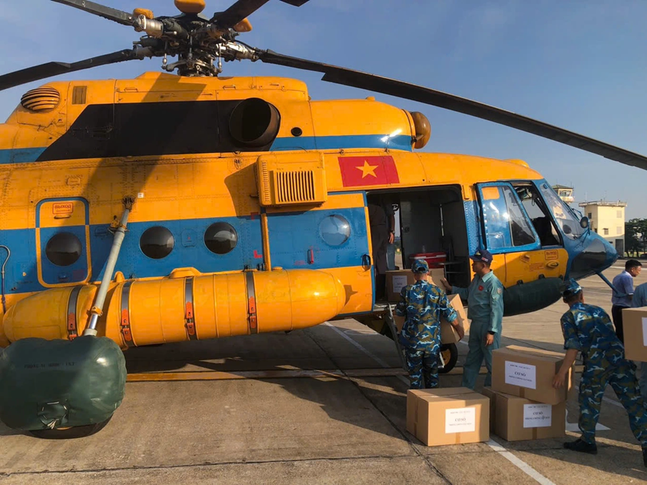 Sáng 3/8, Bộ Quốc phòng đã điều động 2 máy bay của Quân chủng Phòng không – Không quân và 1 máy bay của Binh đoàn 18 phục vụ đoàn công tác gồm: Cục Cứu hộ, cứu nạn, Bộ Tổng tham mưu (Văn phòng Ban Chỉ đạo Phòng thủ dân sự quốc gia), Bệnh viện Trung ương Quân đội 108, Cục Quân y,…