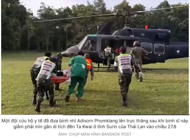 Hôm 27.8, binh nhì Adisorn Pomklang, thuộc Tiểu đoàn Bộ binh 1, đã bị mất chân phải sau khi giẫm phải mìn gần Đồi 350. Trung sĩ Natthaphong Seechin bị thương nhẹ sau khi mảnh mìn găm vào lưng, còn binh nhì Thannathorn Thaokrathok bị thương ở cổ tay trái.