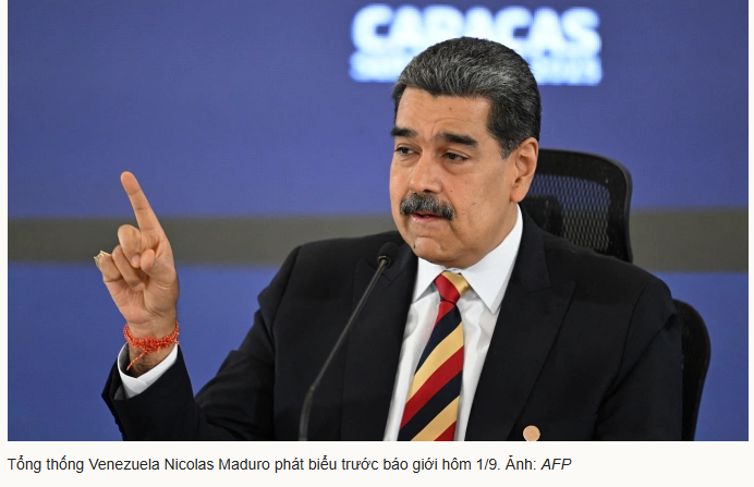Tại cuộc gặp với truyền thông quôc tế ở Caracas hôm 1/9, Tổng thống Nicolas Maduo cho biết, Venezuela đang đối mặt với “mối đe dọa lớn nhất” trong vòng 100 năm qua. Hiện 8 tàu chiến Mỹ với 1.200 tên lửa và một tàu ngầm “đang nhắm vào chúng tôi” sẵn sàng khai hỏa.