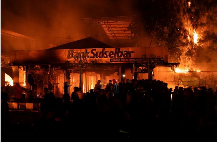 Phong trào biểu tình bắt đầu nổ ra tại Jakarta trong tuần này vì vấn đề trả lương cho các nghị sĩ và trở nên tồi tệ hơn sau khi xe cảnh sát đâm chết một người đi xe máy. Đợt biểu tình gây ra thử thách lớn đầu tiên đối với chính phủ gần 1 năm tuổi của Tổng thống Prabowo.
