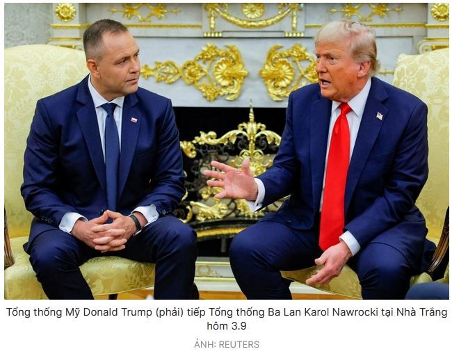 Hãng Reuters ngày 4.9 dẫn lời Tổng thống Mỹ Donald Trump khi tiếp Tổng thống Ba Lan Karol Nawrocki cho biết nước này có thể tăng cường binh sĩ hiện diện và cam kết đảm bảo khả năng phòng vệ của Ba Lan.