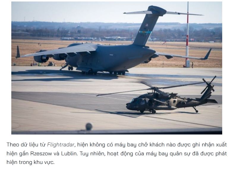 Theo dữ liệu từ Flightradar, hiện không có máy bay chở khách nào được ghi nhận xuất hiện gần Rzeszow và Lublin. Tuy nhiên, hoạt động của máy bay quân sự đã được phát hiện trong khu vực.