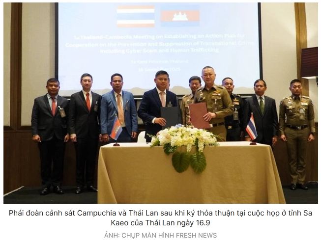Cảnh sát Thái Lan và Campuchia vừa thông qua kế hoạch hành động chung đầu tiên nhằm chống tội phạm xuyên quốc gia, tập trung vào gian lận qua mạng và nạn buôn người, theo cổng thông tin Fresh News ngày 17.9.