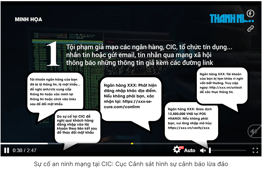 Cục Cảnh sát hình sự (Bộ Công an) đưa ra 4 phương thức giả mạo lừa đảo, liên quan đến sự cố an ninh mạng xảy ra tại Trung tâm Thông tin tín dụng quốc gia CIC.