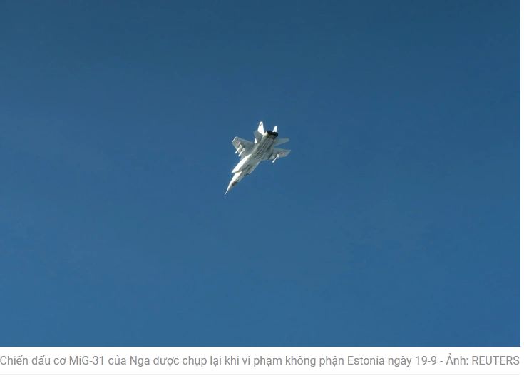 Theo Hãng tin AFP ngày 19-9, Estonia thông báo ba chiến đấu cơ MiG-31 của Nga đã xâm phạm không phận nước này trên vùng vịnh Phần Lan, hành động khiến liên minh Tổ chức Bắc Đại Tây Dương (NATO) và Liên minh châu Âu (EU) cáo buộc là “khiêu khích nguy hiểm”.