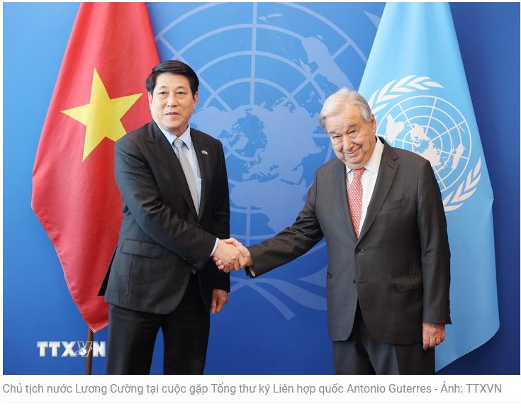 Về phần mình, Chủ tịch nước Lương Cường khẳng định Việt Nam tin tưởng, ủng hộ chủ nghĩa đa phương và vai trò trung tâm của Liên hợp quốc trong quản trị toàn cầu.