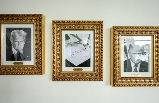 “Đại lộ Danh vọng Tổng thống đã xuất hiện tại hành lang Colonnade của Cánh Tây”, trợ lý đặc biệt kiêm cố vấn truyền thông của Tổng thống, bà Margo Martin, viết trên X hôm 24/9, kèm theo đoạn video cho thấy loạt chân dung đen trắng của các đời Tổng thống trong khung mạ vàng treo dọc hành lang.