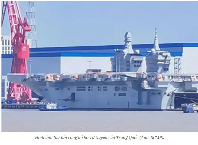 Tàu tấn công đổ bộ mang máy bay không người lái (UAV) đầu tiên của Trung Quốc mang tên Tứ Xuyên được cho là sẽ sớm chạy thử trên biển sau khi xuất hiện những hình ảnh cho thấy con tàu đã sẵn sàng.