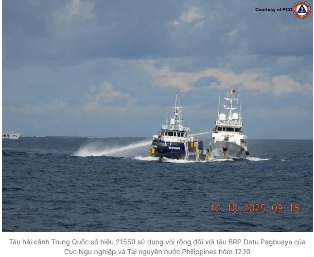 Biển Đông lại dậy sóng. Sáng 12/10, giữa những lớp sương mờ và sóng bạc đầu của vùng nước tranh chấp, tàu bảo vệ bờ biển Trung Quốc bị cáo buộc đã “cố tình đâm” vào đuôi tàu BRP Datu Pagbuaya của Cục Thủy sản Philippines.