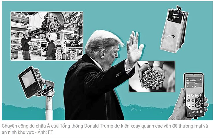 Tại Tokyo, Tổng thống Donald Trump sẽ gặp nữ Thủ tướng đầu tiên của Nhật Bản Takaichi Sanae. Đầu năm nay, Washington và Tokyo đã đạt thỏa thuận thương mại mới, theo đó Nhật cam kết đầu tư 550 tỉ USD vào Mỹ, tập trung vào công nghệ cao và năng lượng tái tạo.