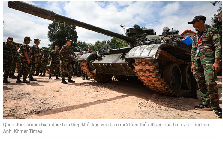 Theo tờ Khmer Times, Campuchia đã bắt đầu rút các loại vũ khí hạng nặng khỏi khu vực biên giới chung với Thái Lan, mở đường cho nỗ lực khôi phục quan hệ hữu nghị và bình thường hóa quan hệ song phương giữa hai quốc gia láng giềng.