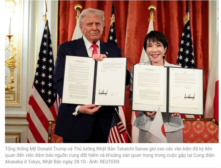 Ngày 28-10, Tổng thống Mỹ Donald Trump và Thủ tướng Nhật Bản Takaichi Sanae đã ký thỏa thuận khung nhằm đảm bảo nguồn cung đất hiếm và các khoáng sản quan trọng thông qua hoạt động khai thác và chế biến.