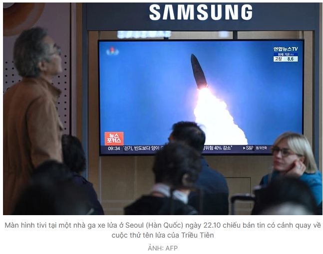 Triều Tiên thông báo cuộc phóng tên lửa mới khi Tổng thống Mỹ Donald Trump dự kiến sẽ đến thành phố Gyeongju của Hàn Quốc trong hôm nay để gặp gỡ các nhà lãnh đạo và dự hội nghị cấp cao APEC, theo Reuters. Tổng thống Trump dự kiến hội đàm với Chủ tịch nước Trung Quốc Tập Cận Bình tại Hàn Quốc vào ngày 30.10.
