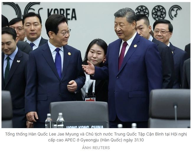 Chủ tịch nước Trung Quốc Tập Cận Bình và Tổng thống Hàn Quốc Lee Jae Myung dự kiến sẽ có cuộc gặp thượng đỉnh trong hôm nay, bên lề Hội nghị cấp cao APEC được tổ chức tại thành phố Gyeongju (Hàn Quốc). Văn phòng của ông Lee hôm 31.10 cho hay ông và ông Tập sẽ thảo luận về vấn đề phi hạt nhân hóa bán đảo Triều Tiên, theo Hãng tin Yonhap.