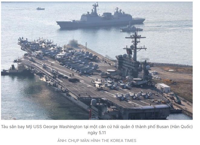 Hải quân Hàn Quốc thông báo chuyến thăm của tàu sân bay USS George Washington là để bổ sung nhu yếu phẩm và cho phép thủy thủ đoàn nghỉ ngơi.