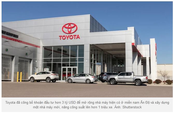 Việc mở rộng sản xuất đang diễn ra mạnh mẽ. Toyota đã công bố khoản đầu tư hơn 3 tỷ USD để mở rộng nhà máy hiện có ở miền nam Ấn Độ và xây dựng một nhà máy mới, nâng công suất lên hơn 1 triệu xe.
