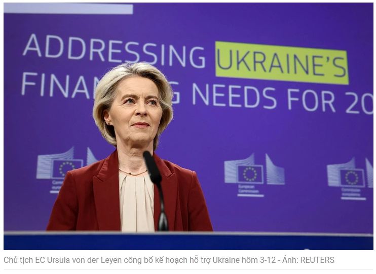 Ngày 3-12, Ủy ban châu Âu (EC) đã trình bày kế hoạch tài trợ 105 tỉ USD cho Ukraine trong hai năm tới, bao gồm sử dụng tài sản đóng băng của Nga và vay tiền quốc tế.