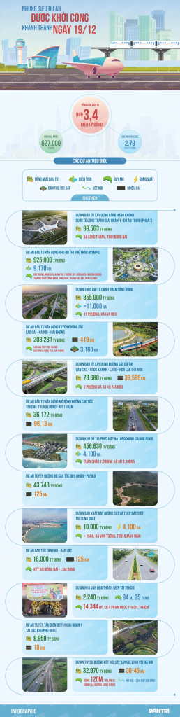 Tổng mức đầu tư của 234 dự án, công trình khởi công, khánh thành ngày 19/12, là trên 3,4 triệu tỷ đồng. Riêng dự án xây dựng Khu đô thị thể thao Olympic ở Hà Nội có mức đầu tư lên tới 925.000 tỷ đồng.